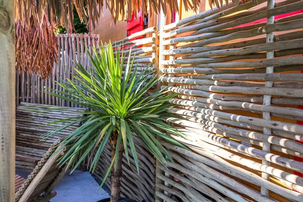 Prétoria est réalisée en eucalyptus, une essence très résistante qui ne nécessite aucun entretien. Ses formes irrégulières et son blanchiment au fil du temps qui lui donnent un aspect de bois flotté, font toute son originalité.