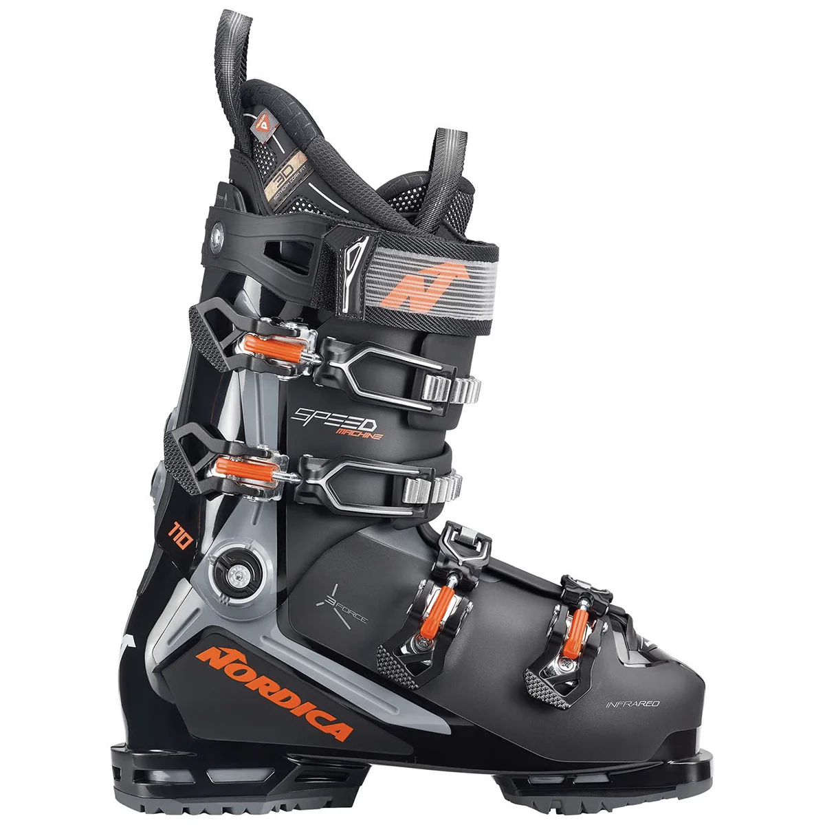 La SPEEDMACHINE 3 110 GW intègre également les technologies Tri-Force, Tri-Fit et Infrared, pour un ajustement sur mesure et un confort maximal. La semelle GripWalk permet de marcher facilement sur tous types de terrain, tout en restant compatible avec les fixations Alpine 5355.