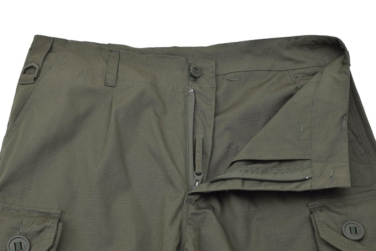 - Fabriqué dans un matériau ripstop olive de haute qualité, ce pantalon résiste aux déchirures et à l’abrasion. Ils offrent des performances fiables même dans des conditions difficiles. Que vous participiez à une mission militaire ou à une aventure en plein air, ce pantalon cargo renforcé offre la durabilité dont vous avez besoin.
