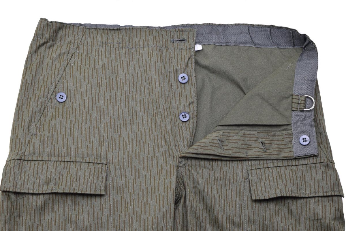 Parfait pour tous ceux qui apprécient les équipements de plein air robustes, ce pantalon camouflage goutte de pluie répond à tous vos besoins. Leur design intemporel, leurs caractéristiques renforcées et leurs poches fonctionnelles en font un incontournable de toute garde-robe. Ajoutez une touche d’histoire militaire à votre équipement avec ce pantalon fiable et performant.
