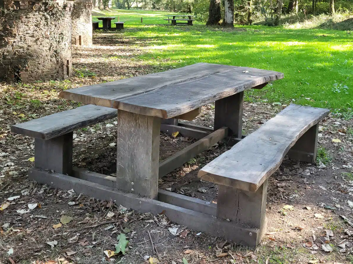 Si la table n’est pas posée sur une terrasse, nous vous conseillons de prévoir des plots bétons pour fixer la table au sol afin d’éviter le contact direct avec l’humidité du sol.