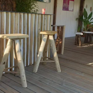 – Pied en épicéa Classe IV aspect bois brûlé, assise en pin Classe IV naturel (non peint)