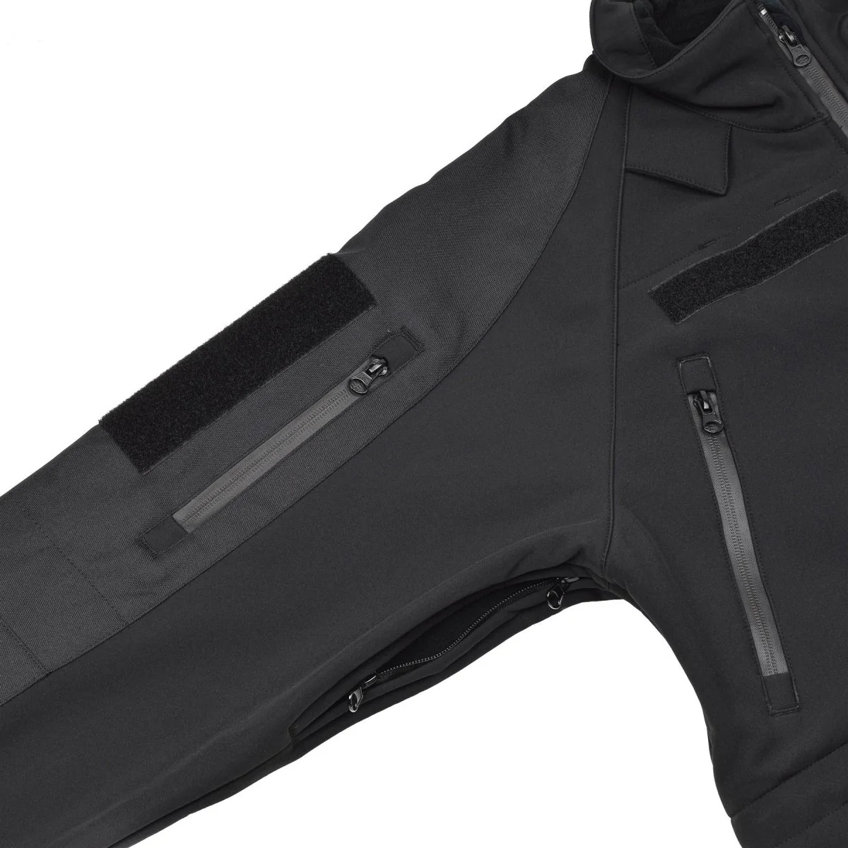 - Cette veste est confectionnée dans un matériau softshell, qui assure flexibilité et confort. Conçu selon des spécifications militaires, il offre une protection contre les éléments tout en permettant une liberté de mouvement. La couleur noire élégante offre une polyvalence, ce qui la rend adaptée à une variété d’occasions.
