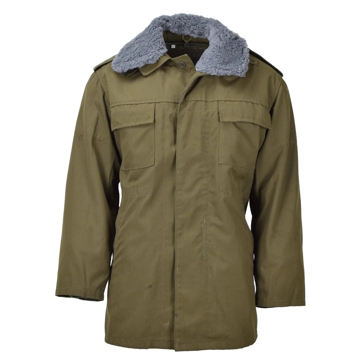 Parka tchèque originale M85 avec doublure et capuche – Vert olive (sans ceinture) Restez au chaud et élégant avec cette parka militaire tchèque originale M85.
