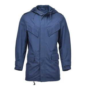 Parka d’officier militaire néerlandaise originale à capuche coupe-vent imperméable de l’armée bleu uni