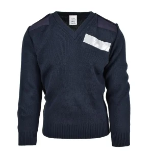 Pull original du service de police britannique Commando Jumper Pull bleu à col en V